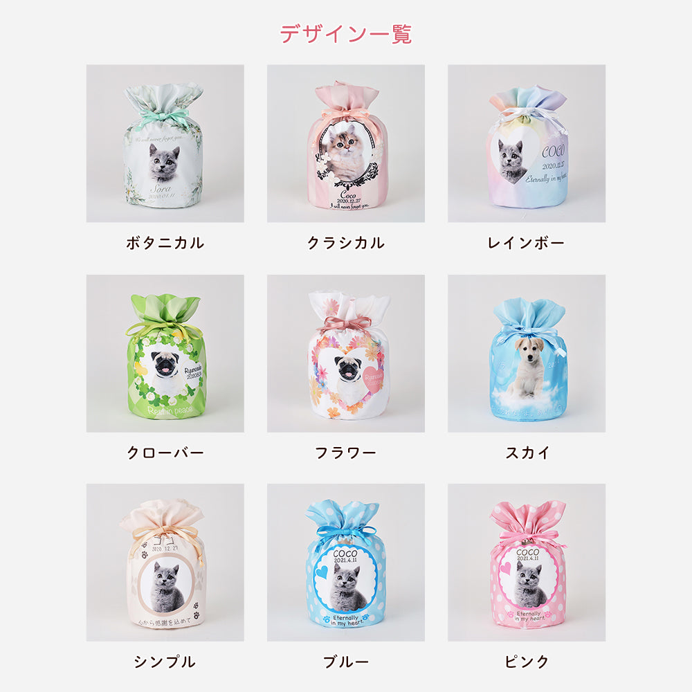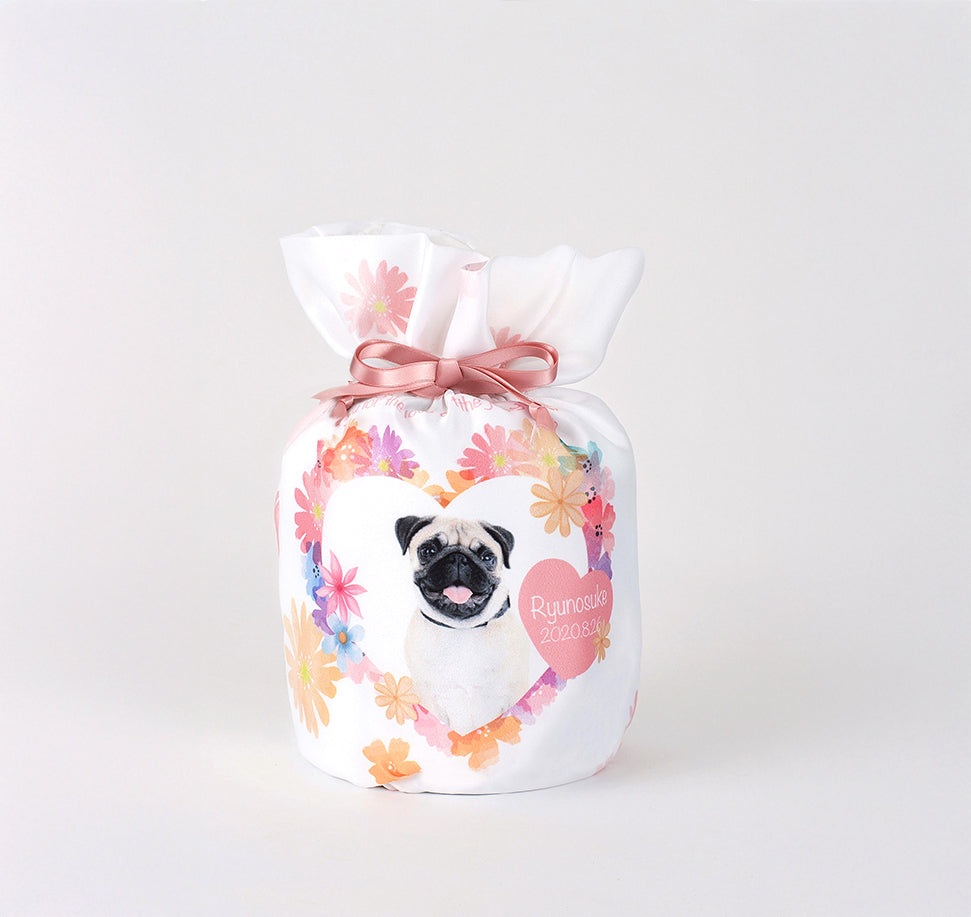 サテンの白生地に印刷をする「ワンポイント」と、丈夫でお手入れのし易い生地で作る「フルプリント」の2タイプからお選びいただけます。